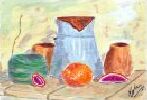 Still Life, Tomato, Chilli & Beans. Drawing |